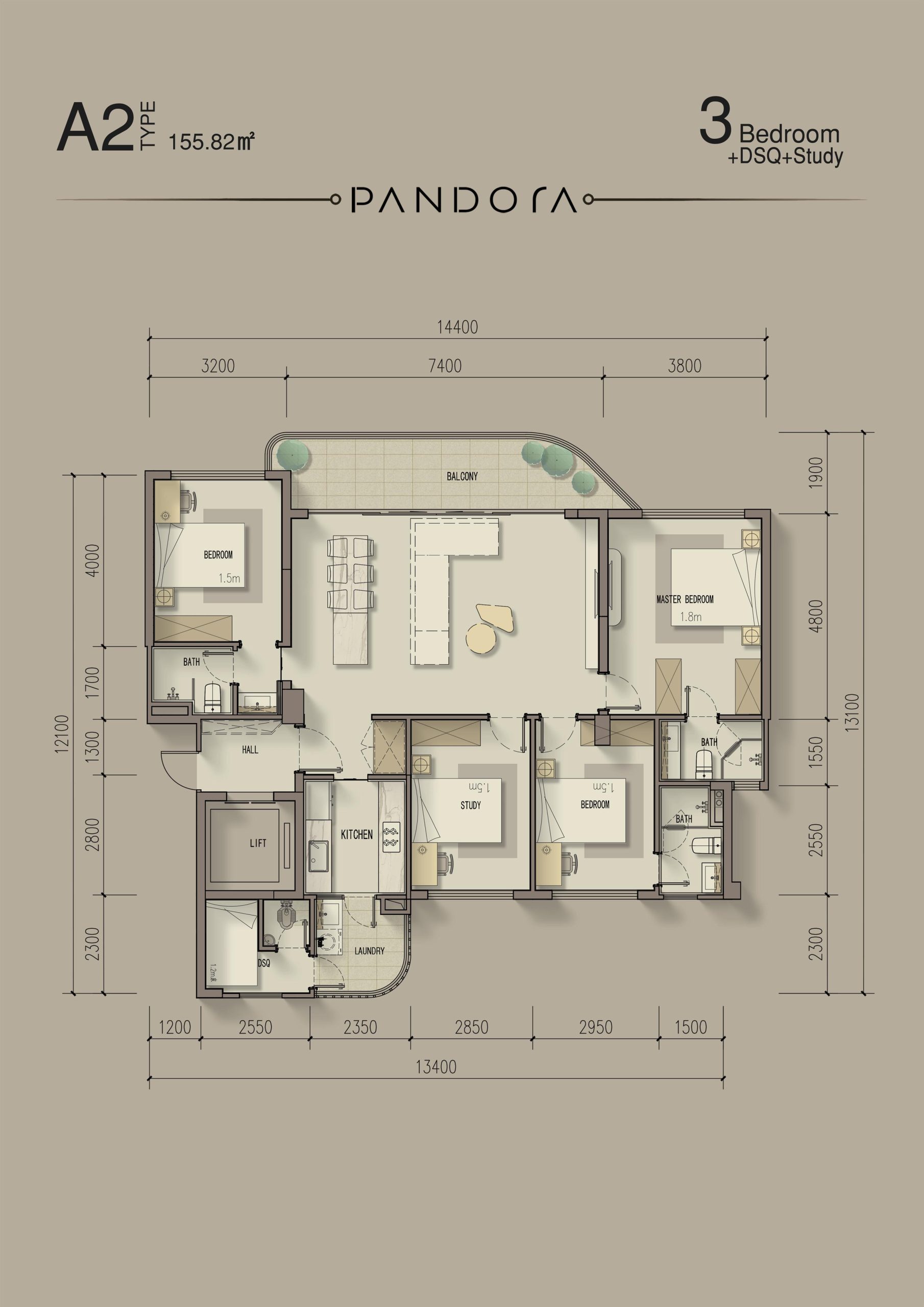 - 3 bedroom + Study room + DSQ 155.82sqm From 24.61M to 26.95M