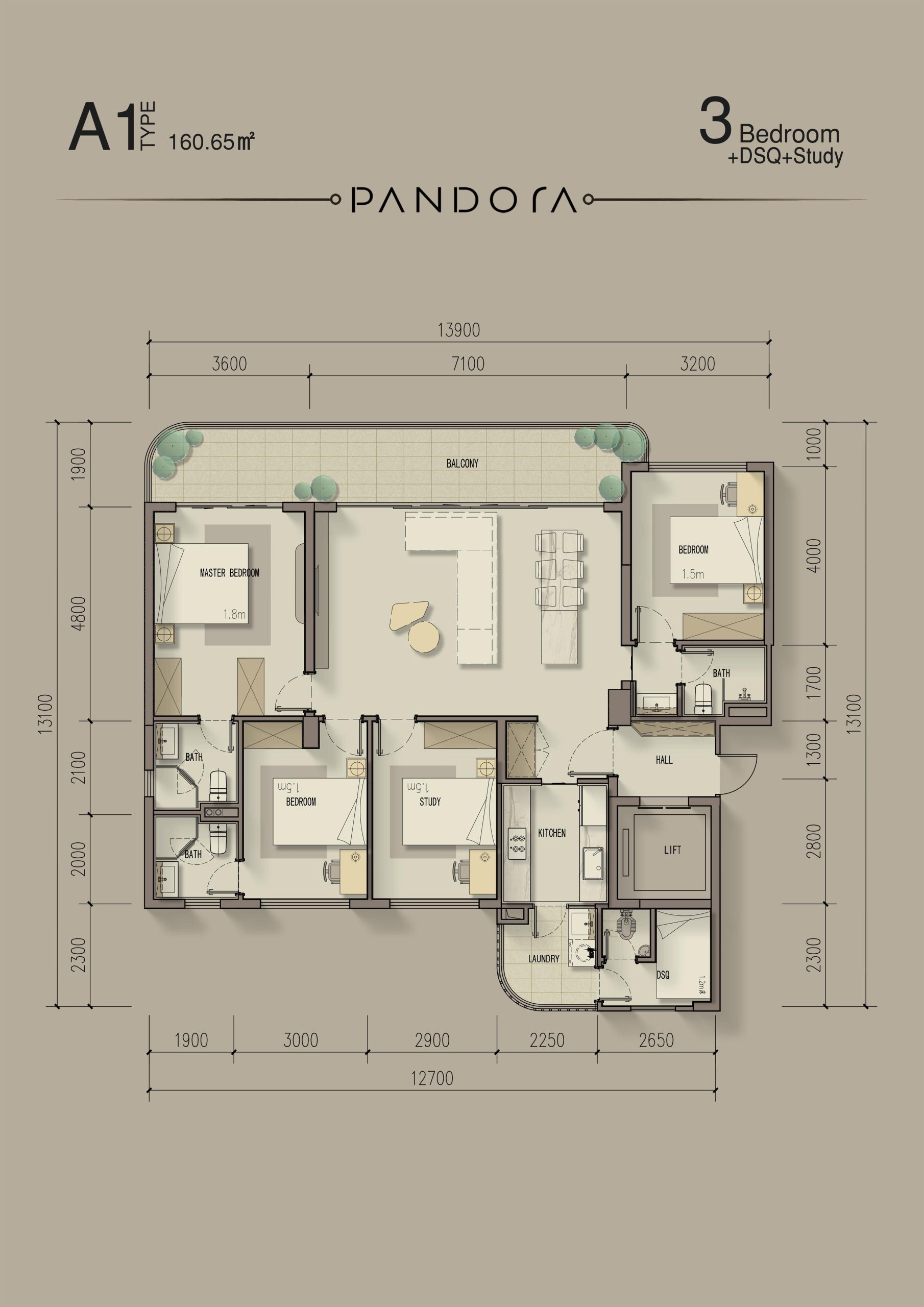 - 3 bedroom + Study room + DSQ 160.65sqm From 25.38M to 27.79M