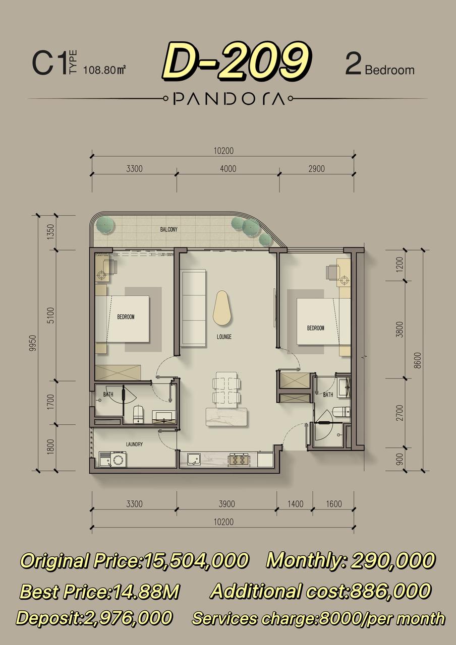 - 2 bedroom 94.33 sqm From 14M to 15.68M