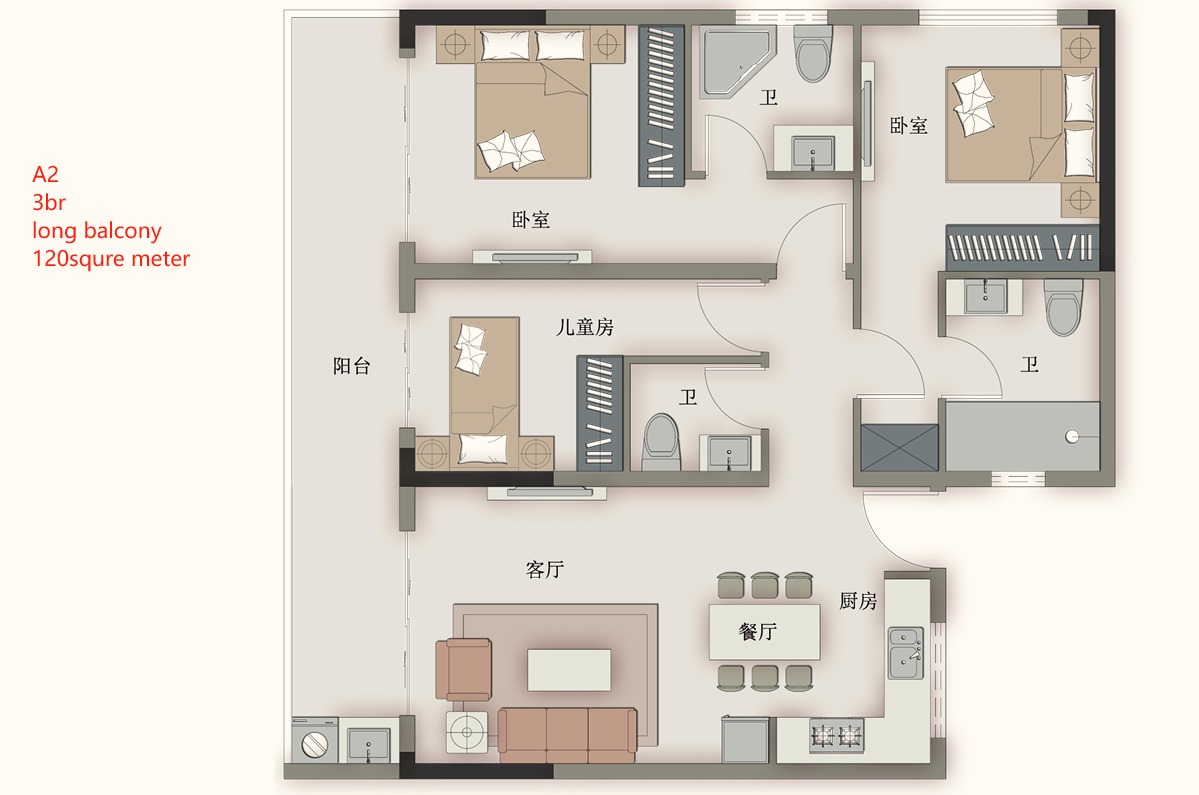 | 3 Bedroom (2 Ensuite) | 120 sqm | 11.3M |